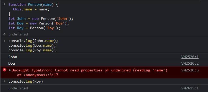 new 생성자를 활용하여 this를 호출하면 함수가 생성한 객체에 바인딩 되지만, 그렇지 않으면 window에 바인딩 되기 때문에 name을 찾지 못하는 모습입니다. 5. 명시적 바인딩